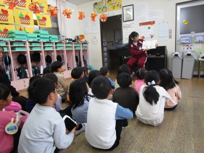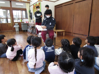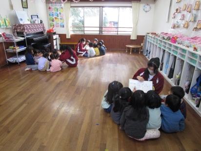 中学生が手作り絵本を読んでくれたり、一緒にふれあい遊びをしました。