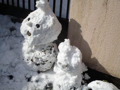 久しぶりの大雪になりました。雪だるまを作りました。
