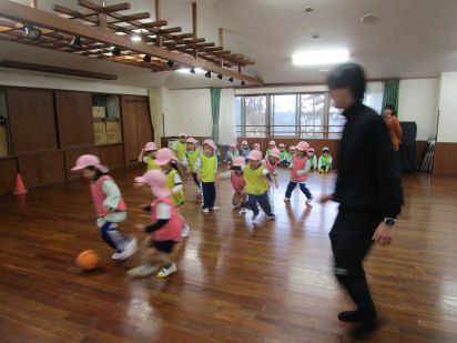 滋賀県サッカー協会の講師の方をお招きしサッカーの体験をしました。
