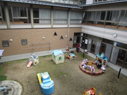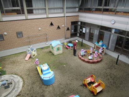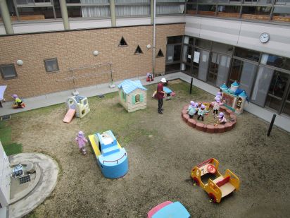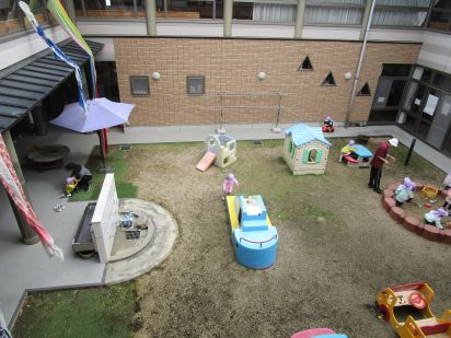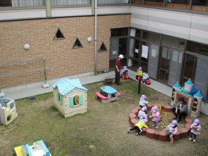 中庭での保育