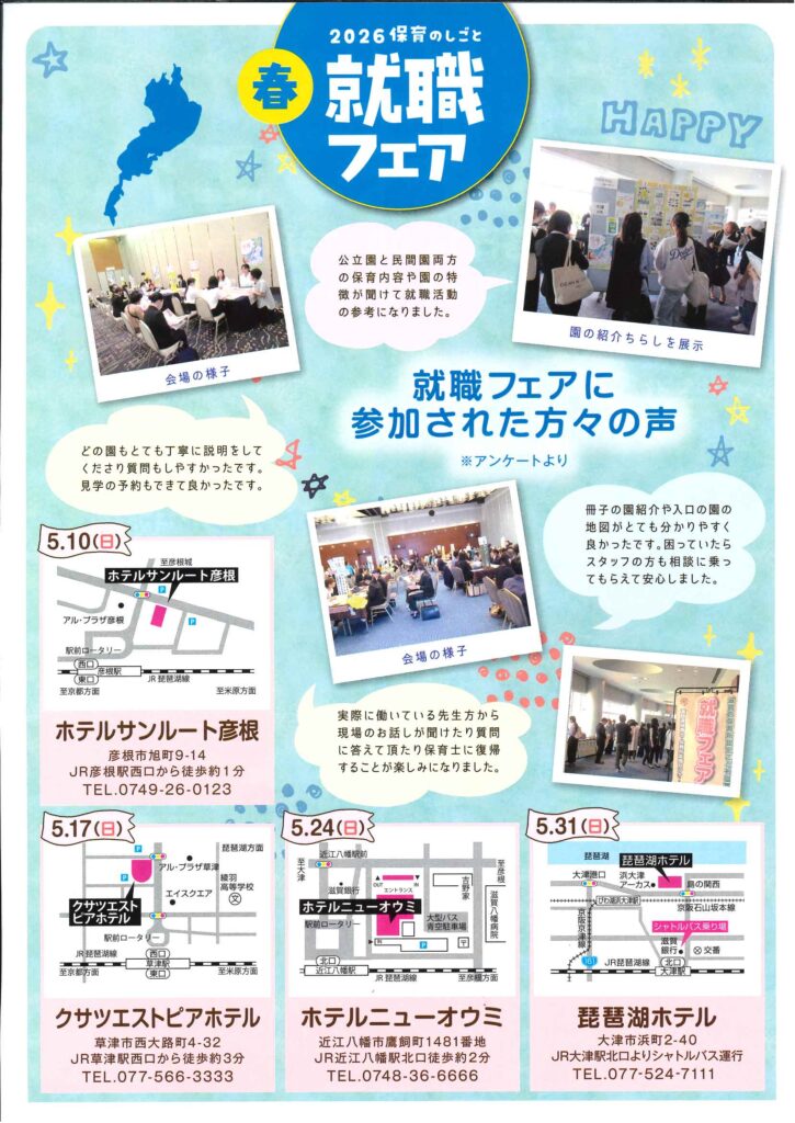 2026年4月23日 最終更新日時 : 2026年4月23日 hasuneda 就職フェア 5/17(日)14時から 草津エストピアホテルにて就職フェアに出展します。 お気軽にお問合せ、お越しください。
